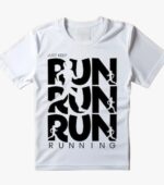 A running T-shirt is designed to provide comfort and performance during physical activity. It is typically made from lightweight and breathable materials that help regulate body temperature and improve ventilation, preventing discomfort during the run.