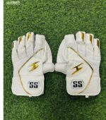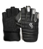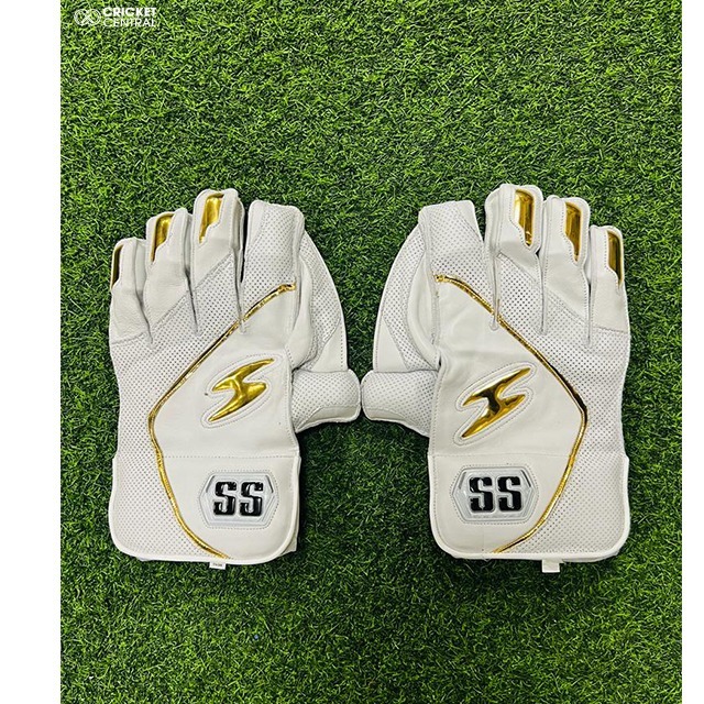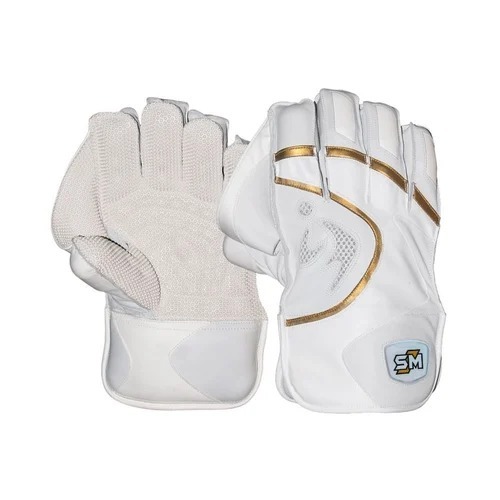 Wicket-keeping gloves are specialized gloves worn by the wicket-keeper in cricket to protect their hands while catching the ball. They are designed with a textured catching surface on the palm and fingers, typically made of rubber, and feature padding to absorb impact. The back of the glove is usually made of leather or synthetic material and may include additional padding for wrist protection.